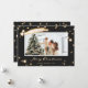 Cartão de Natal personalizado de preto e estrela brilhante, com uma foto-quadro adornada com uma estrela em queda e estrelas brilhantes sobre fundo preto. Personalize facilmente este cartão mágico de Natal com a sua fotografia, o nome da família e o texto. O plano de fundo pode ser alterado para qualquer cor usando a ferramenta de personalização.