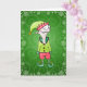 Um elfo engraçado de desenho animado com 3 dentes, esportando um chapéu verde com jaqueta correspondente, shorts vermelhos e sinos jingle em seus calçados. Diga Feliz Natal com um pouco de humor. Arte de desenho original de Taylor Addams.