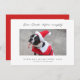 Este cartão de Natal minimalista e engraçado apresenta seu cachorro de estimação, pedindo ao Papai Noel para 'definir travesso'. Perfeito para um cartão de Natal ou de Natal leve e alegre que apresenta o membro mais travesso (e fofo) da família. O formato de cartão único permite que seu cão brilhe, e há espaço no verso do cartão para uma mensagem pessoal datilografada ou manuscrita dos humanos.