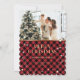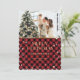 Cartão de Natal personalizado de xadrez de búfalo vermelha e dourada com neve e estrelas em um padrão de xadrez de búfalo. Personalize facilmente este cartão de feriado vermelho e dourado com a sua fotografia e texto. Mais opções de cores disponíveis.