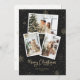 Foto personalizada de preto e ouro Cartão de Natal Merry com uma colagem fotográfica, uma elegante letra de escrita e fundo preto adornados com queda de neve e flocos de neve. Personalize facilmente este cartão de feriado moderno com as suas fotografias e texto.