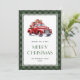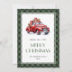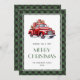 Xadrez verde personalizada de búfalos Feliz Cartão de Natal com um clássico caminhão vermelho. Personalize facilmente este cartão de férias de caminhão vermelho com a sua família.