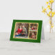 Personalize este cartão de Natal com a sua própria fotografia rodeada por verdes e molduras douradas. Escreva seus próprios desejos de Natal.