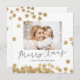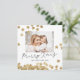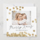 Cartão de saudação de Natal festivo e original com a sua própria foto de família na frente. Ao redor da foto estão lindas estrelas ouros caindo. Uma letra de tipografia escrita à mão com Feliz X-mas. Por outro lado, você pode adicionar sua própria mensagem de feriado e encontrar mais pequenas estrelas de ouro. Design original de Luckz.