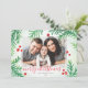 Cartão de Natal em vermelho clássico e verde com sala para a foto da sua família! Apresentando ramos de pinheiro e bagos vermelhos festivos em bela cor d'água. Mantenha como "Feliz Natal" ou personalize com sua própria mensagem.