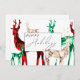 Um cartão de Natal único e na moda, projetado com renas de cristal de cor d'água pintadas à mão em três cores de pedra preciosa: esmeralda, rubi e diamante. A parte traseira contém uma mensagem de feriado quente que você pode deixar como está, editar como quiser ou excluir para um cartão de vazio.
