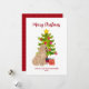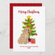 Cartão de Natal de Goldendoodle bonito com árvore de Natal e presente. Personalize com seu texto.
