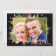 A Elegante Watercolor Holly e Berries, Cartão de Férias de Natal. Na frente da placa está uma foto de um casal sobre fundo de quadro de frutas, preto e branco. Uma bela tipografia escrita à mão e o nome do casal. A parte de trás da carta é um padrão de morangos vermelhos. Personalize a frente da placa com sua foto e seus nomes.
