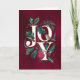 Celebre a época de férias com este cartão de Natal "Joy", maravilhosamente desenhado. Apresentando uma ilustração clássica e elegante de folhas sagradas, bagas, um pássaro, e uma pera sobre um rico fundo de burlôncio, esta carta captura a essência do espírito de Natal. O detalhamento intrincado e o design eterno tornam perfeito para espalhar alegria aos seus entes queridos nesta época festiva.