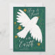 Uma mão ilustrada flutua através deste charmoso cartão de Natal espalhando uma mensagem de alegria e paz na Terra.