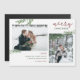 Barato de cartões com fotos de férias magnéticos com impressão personalizada com modelos simples para personalização. O design apresenta um texto Feliz de Natal, um modelo de colagem de fotos com espaço para duas fotos e sua saudação personalizada, destacada com simples galhos elegantes de verde-aquarela. Use as ferramentas de design para editar fontes e cores ou carregar mais fotos para criar um design de Cartões de foto de Natal exclusivo.