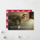 Este cartão de Natal para amantes de gatos apresenta a frase "Natal meowy" em branco com uma pequena pegada branca no meio das duas palavras. O verso é um padrão de pegadas vermelhas e brancas.
