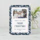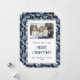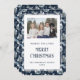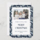 Foto azul mágica Cartão de Natal Merry com floresta encantada com raposa, botânica popular e ornamentos nórdicos. Personalize facilmente este cartão de feriado azul com sua foto e seu nome de família.