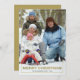 Compartilhe a foto favorita de sua família com todos nesta temporada de festas. Um quadro fino em ouro descreve sua foto com uma mensagem de "Feliz Natal" na parte inferior.