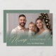 Envie um toque de elegância nesta temporada com este cartão de feriado minimalista, apresentando um sutil gradiente verde ao longo do fundo e "Feliz Natal" na frente. Adicione sua própria foto para um cartões de natal personalizado e na moda. Perfeito por compartilhar uma mensagem calorosa e elegante com os entes queridos!