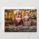 Foto minimalista simples de escrita moderna com Feliz Natal na frente da fotografia da família.