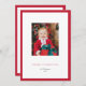 Apresentamos um cartão de Natal atemporal e elegante que encapsula o espírito da época - um design clássico com uma borda vermelha ousada que emoldura uma única foto, permitindo que sua imagem querida brilhe em toda a sua glória. O simples e caloroso cumprimento, "Feliz Natal", transmite seus melhores votos de Natal com graça atemporal.