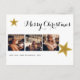 Este design minimalista, elegante e divertido apresenta três das suas fotos favoritas em forma quadrada, com uma saudação de Feliz Natal em uma fonte caprichosa festiva acima e seu nome em tipografia moderna simples abaixo. O cartão é decorado com duas estrelas douradas falsas. O verso contém seus votos de Natal personalizados. Para personalizar, clique no botão ´Personalizar´.