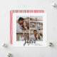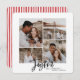 Cartão de natal multifoto alegre. Design de férias moderno vermelho e branco. Script de texto com uma borda moderna. Mão pintada com o apoio listrado. Altere a cor do pacote para personalizar.
