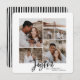 Cartão de natal multifoto alegre. Design de Natal preto e branco moderno. Script de texto com uma borda moderna. Mão pintada com o apoio listrado. Altere a cor do pacote para personalizar.