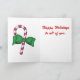 Cartão de Natal de inverno com um boneco de neve, árvore de Natal e dentro de Candy Cane.
