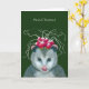 Ogambá com chapéu de rabanete desejando um Feliz Natal