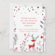 Envie um cartões de natal sincero com este doce e simples cartão de Natal, com uma encantadora rena ilustrada numa acolhedora cena florestal. O design captura uma vibração escandinava rústica com um esquema de cores clássico de preto, cinza, branco e pop de vermelho festivo. Flocos de neve, Enfeites de natal e árvores adicionam um toque de calor folk art a esta carta, fazer-a perfeita para espalhar alegria sazonal. Personalize a saudação e adicione uma foto da família negra e branca para um toque pessoal e confortável à sua mensagem de feriado. Ideal para quem ama estética de férias russa com uma sensação confortável e escandinava.