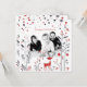 Envie um cartões de natal sincero com este doce e simples cartão de Natal, com uma encantadora rena ilustrada numa acolhedora cena florestal. O design captura uma vibração escandinava rústica com um esquema de cores clássico de preto, cinza, branco e pop de vermelho festivo. Flocos de neve, Enfeites de natal e árvores adicionam um toque de calor folk art a esta carta, fazer-a perfeita para espalhar alegria sazonal. Personalize a saudação e adicione uma foto da família negra e branca para um toque pessoal e confortável à sua mensagem de feriado. Ideal para quem ama estética de férias russa com uma sensação confortável e escandinava.