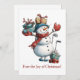 Envie alegria natalina com este cartão de Natal divertido que apresenta um boneco de neve sorridente pronto para a temporada. Paus de golfe à disposição e presentes coloridos para compartilhar, este design alegre combina diversão no inverno com o amor pelo jogo. Perfeito para golfistas, ligas de golfe ou qualquer pessoa que goste de um cumprimento de Natal leve, é uma maneira festiva de compartilhar alegria com amigos e familiares.