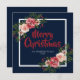 Design de cartão de Natal elegante com cor d'água florais de inverno e fundo azul marinho.
