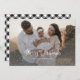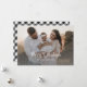 Foto personalizada de xadrez de gingham preto-e-branco Feliz Cartão de Natal com uma camada de neve e uma bela fonte festiva. Personalize facilmente este cartão de feriado de xadrez preto e branco com a sua fotografia e o seu nome de família.