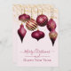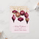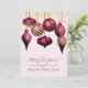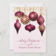 Este cartão de feriado elegante apresenta belos Enfeites de natal em burgundy e ouro com as luzes de cordas de ouro sobre um fundo cor-de-rosa macio. Texto "Feliz Natal e Feliz ano novo" na frente, e saudações pessoais e nomes de família no verso podem ser facilmente alterados clicando em "Personalizar". Perfeito para o feriado.