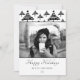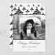 Cartão de foto de Natal elegante e moderno. O cartão segue um esquema de cores preto e branco - com foto, desejo de Feliz Natal, sua nota pessoal e o número do ano em letra cursiva preta na moda. O padrão de árvore de Natal abstrata preta está na frente e no verso do cartão. Insira sua foto favorita no modelo - uma foto em preto e branco combina muito bem com o design. Personalize este cartão com seu nome e número do ano. É um ótimo design para qualquer pessoa, especialmente para solteiros.