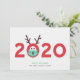 O cartão perfeito para o Natal em 2020, este design personalizável com uma ilustração de uma rena mascarada inserida no ano de 2020 diz tudo. Um pouco de humor para aliviar o clima nesta época de Natal. Em vermelho, verde e marrom. A saudação e os nomes são personalizáveis.