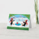 Pinguins de gelo em um lago de neve congelado e em seu rolo surpresa em um presente de Natal. Personalize a dentro deste cartão de Natal com sua própria foto e nome.
