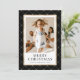 Negra elegante e dourada Cartão de Natal Feliz. Personalize facilmente este cartão de feriado moderno com sua foto e texto.