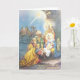 Cartão de Natal polonês retrô / antigo. Cena encantadora do nascimento com a Sagrada Família e os Três Reis Magos. Wesołych Świąt Bożego Narodzenia! Feliz Natal!