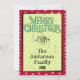 Espalhe a alegria de férias com o Cartão de Natal Simples e Simples Vermelho Não Fotográfico! Este charmoso design apresenta um fundo amarelo vibrante adornado com pinheiros retrorados desenhados à mão e delicados sotaques estelares para uma sensação lúdica e nostálgica. A placa é bordada por uma estrutura vermelha em negrito com triângulos brancos abertos, adicionando um toque nítido e moderno. Personalize a saudação e personalize-a com seu nome de família para torná-la exclusivamente sua. Perfeito para aqueles que buscam um cartão de Natal simples, fofo e na moda, sem foto, com uma reviravolta.