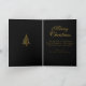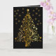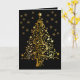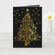 Cartão de Natal sofisticado, preto e Dourado, com árvore Dourada Ornamentado enquanto o Centerpedal e os flocos de neve dourados caem. Envelope correspondente também disponível. Feliz feriado dos Designs Paula McGee.