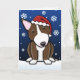 Cartões de Natal Touro Terrier bonitos são perfeitos para enviar a todos os amantes de cães na sua lista de férias este ano! Um adorável desenho colorido Bull Terrier, de cor kawaii, se senta sobre neve recém-caída vestindo um boné Papai noel, enquanto os flocos de neve deslizam suavemente ao seu redor. A dentro também tem flocos de neve e diz: "Feliz Feriados!" Você pode personalizar o texto facilmente em qualquer mensagem instantaneamente.