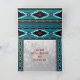 Personalize este cartão de Natal Southwest Kokopelli "único"! Ele apresenta um Kokopelli do sudoeste turquesa tocando flauta com notas musicais em um fundo de Natal prateado com flocos de neve, cercado por bordas turquesa, ferrugem e preto e as palavras edificantes..."Paz na Terra"!