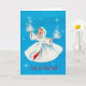 Cartão de Natal Vintage - Linda menina vintage flutuando em uma cena de neve com "Let It Snow" como tema. O texto "Let It Snow" é totalmente editável - você pode alterar as palavras, fonte e cor. Dentro, você também pode personalizar adicionando seu próprio texto.