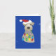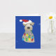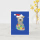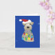 Um aperitivo galês é aprisionado em luzes de Natal, enfeitado com um chapéu de Papai Noel, e tem um galho de abeto saindo de sua boca neste cartão azul de Natal. Procure o meu papel de embrulho coordenado.