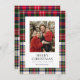 Cartão de Natal com uma foto e dois padrões de xadrez escocês em tons de vermelho, verde e azul-marinho chamado Cartão de Natal Xadrez Moderno Clássico com Uma Foto Orçamento.