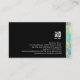 Este notável cartão de visita negro e profissional apresenta uma elegante faixa de mistura de cores abstrato multicolorido na borda inferior. Seu nome e título aparecem logo acima dessa borda padronizada, sobre um fundo preto a jato. O mesmo tema padronizado aparece na parte de trás do cartão, exceto que a faixa está na borda direita. O logotipo da sua empresa e os detalhes de contato aparecem na seção preta da placa. Esta cartão de visita dá uma primeira impressão impressionante e é perfeita para temas de alto impacto, ativos, moda, estilo, chic, profissional, moderno, sofisticado, abstrato.