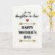 Este cartão apresenta um fundo esbranquiçado e levemente texturizado que parece papel macio, criando um cenário tranquilo para uma mensagem focada na família. Perto do topo, a linha "para minha nora" aparece em letras cursivas pretas, espaçadas com bastante espaço para respirar, dando um tom suave e íntimo. Um único coração vermelho ❤️ fica abaixo dessa linha, no centro, atuando como uma pausa silenciosa de afeto entre as palavras acima e abaixo. Abaixo do coração, "FELIZ DIA DAS MÃES" é impresso em letras serifadas pretas fortes, maiores e mais pesadas, para que se destaque imediatamente. Em ambos os lados dessa frase principal, duas setas simples em uma cor castanha dourada clara apontam para dentro, criando uma moldura equilibrada que parece um abraço. O contraste entre a linha superior delicada e a saudação mais pesada abaixo adiciona um sentido sutil de proximidade, como um olhar caloroso compartilhado pela página 🌼. As setas têm uma aparência ligeiramente brilhante e tinta, enquanto o fundo mostra fibras tênues e pontilhado que dão