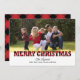 O cartão com fotos moderno de "Feriados Felizes" inclui um grande espaço para fotos e texto preto que pode ser personalizado. Apresenta um padrão de xadrez de búfalo vermelho e preto rústico nos lados frontal e traseiro da placa com neve falsa. <i>Fotografia © Storytree Studios, Stanford, CA</i>