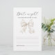 Este cartão de inclusão de "noite de encontro" de chuveiro de noiva apresenta um design simples de laço branco perfeito para chuveiros de noiva "ela está dando o nó".