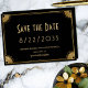 Cartão de Noivado Art Déco Simples em Preto e Dour