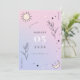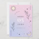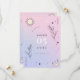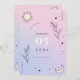 Surpreenda seus entes queridos com este cartão de Save the Date místico celestial, apresentando fundo gradiente rosa e roxo, ilustração de lua e estrela e detalhes editáveis. Personalize facilmente clicando na opção "personalizar".